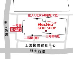 GOLF SHOP:上海市長寧区延安西路2201号上海国際貿易中心1層109室LAWSON向かい